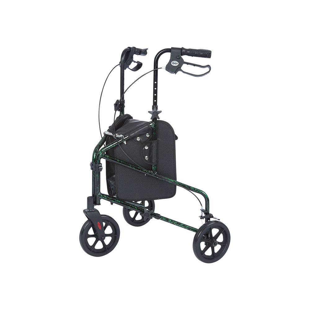 • Lightweight, 3 wheel rollator with 8” wheels and locking loop brakes